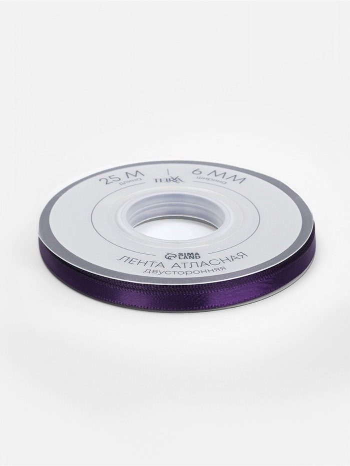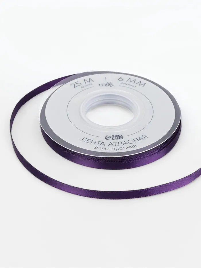 Лента атласная TEIRA, двухсторонняя, 6 мм, 25±1 м, фиолетовая №476 — Характеристики