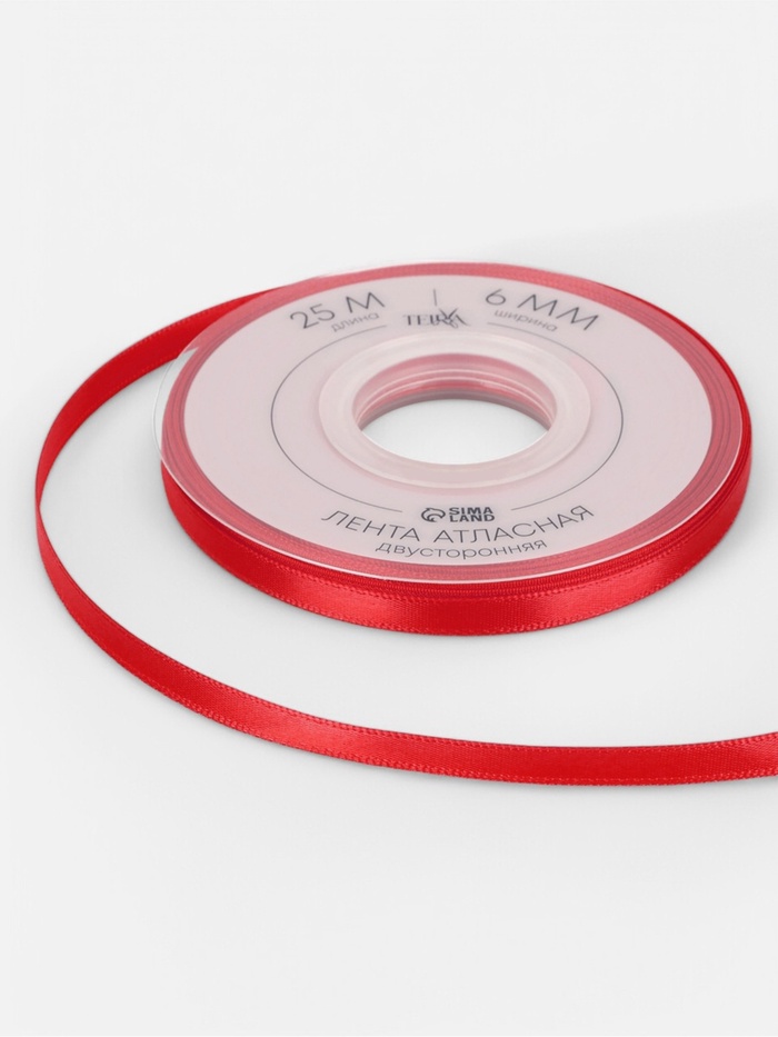 Лента атласная TEIRA, двухсторонняя, 6 мм, 25±1 м, красная №0250 — Характеристики