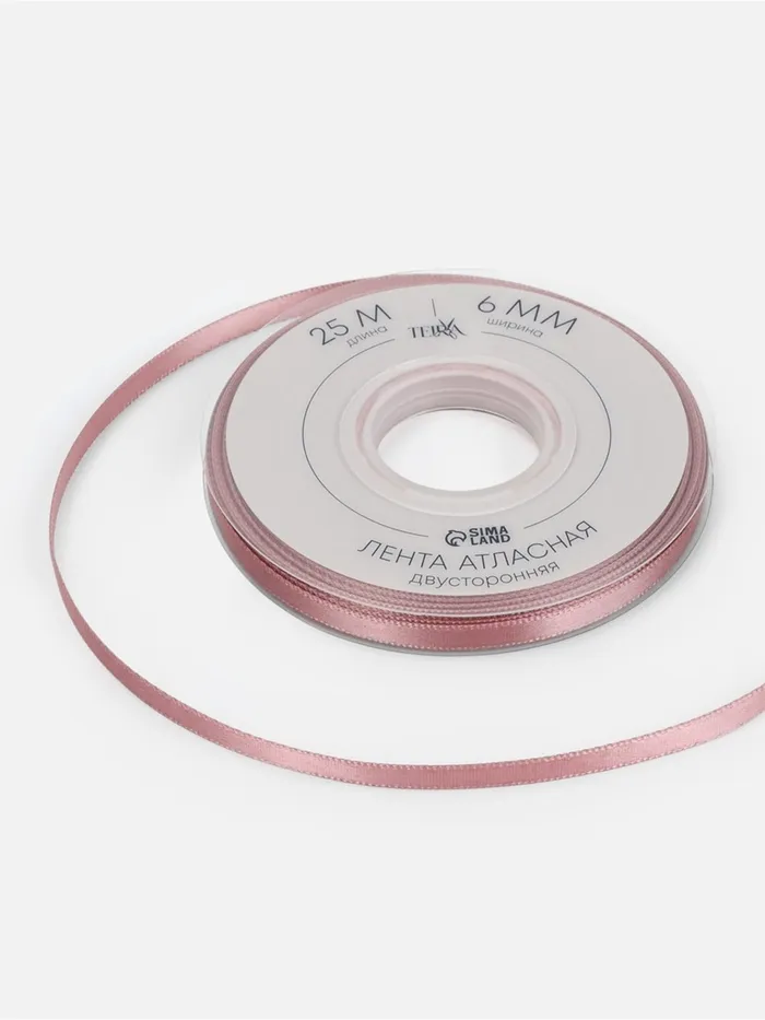 Лента атласная TEIRA, двухсторонняя, 6 мм, 25±1 м, розовая №164 — Характеристики