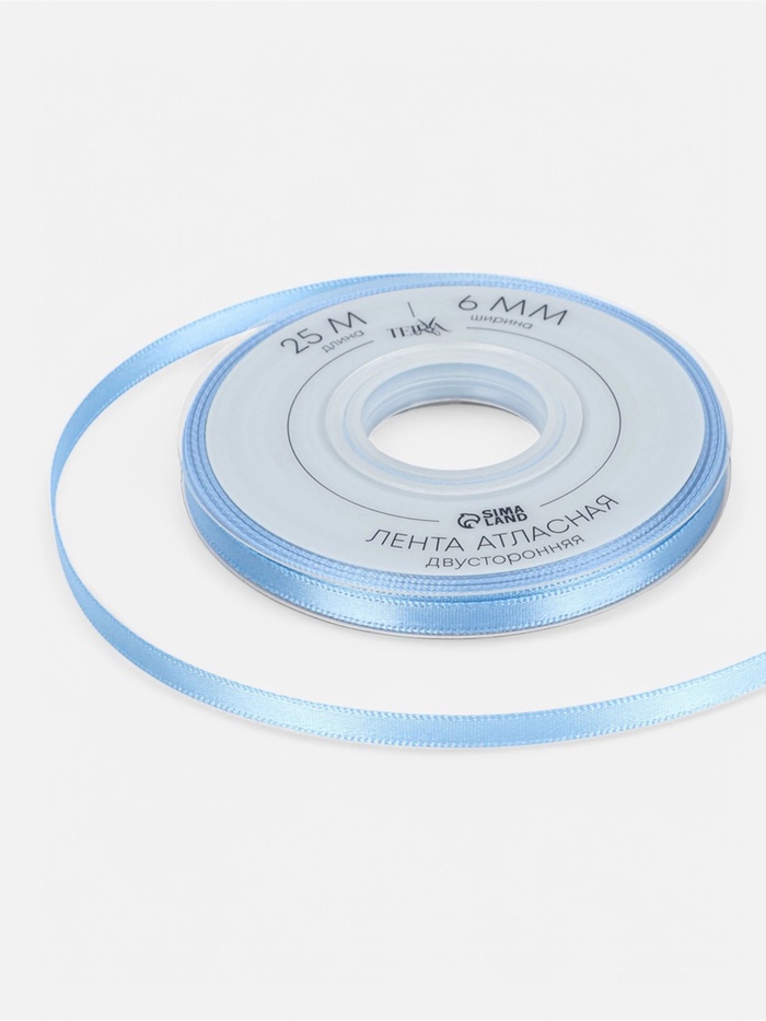 Лента атласная TEIRA, двухсторонняя, 6 мм, 25±1 м, светло-голубая №332 — Характеристики