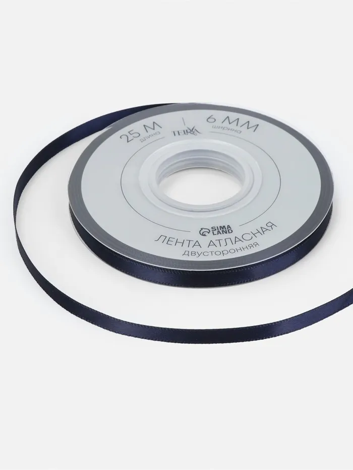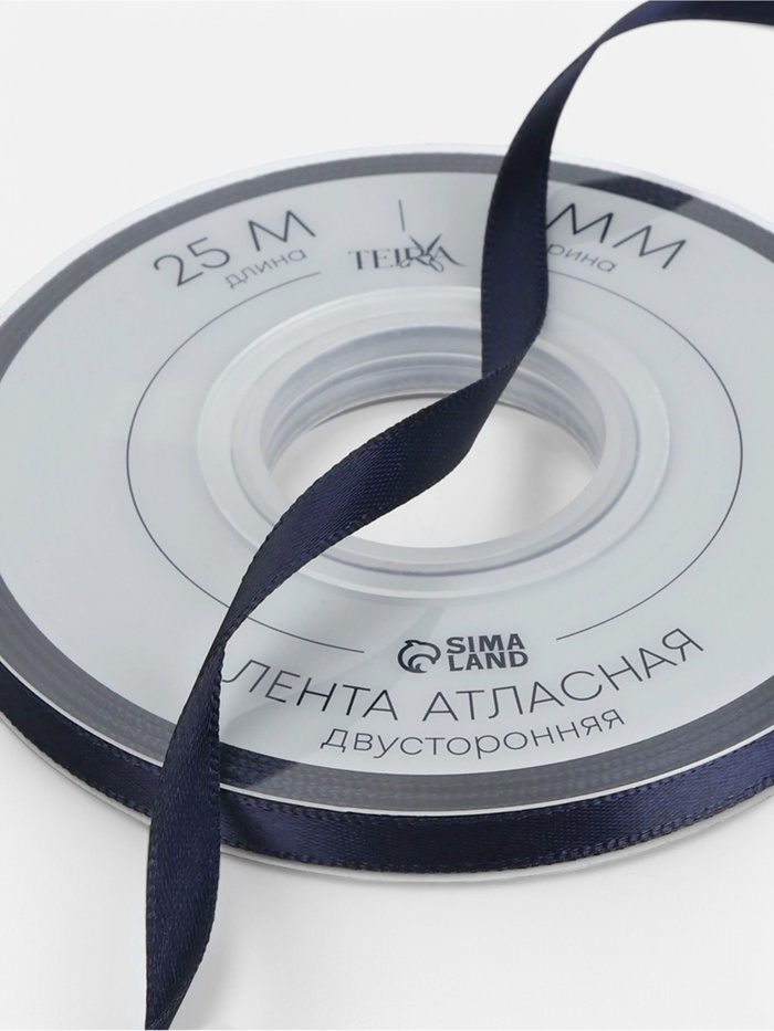 Лента атласная TEIRA, двухсторонняя, 6 мм, 25±1 м, тёмно-синяя №330 — Характеристики
