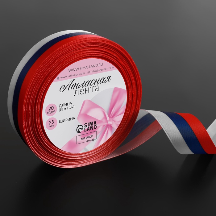 Лента атласная «Триколор», односторонняя, 25 мм, 18 ± 1 м — Характеристики