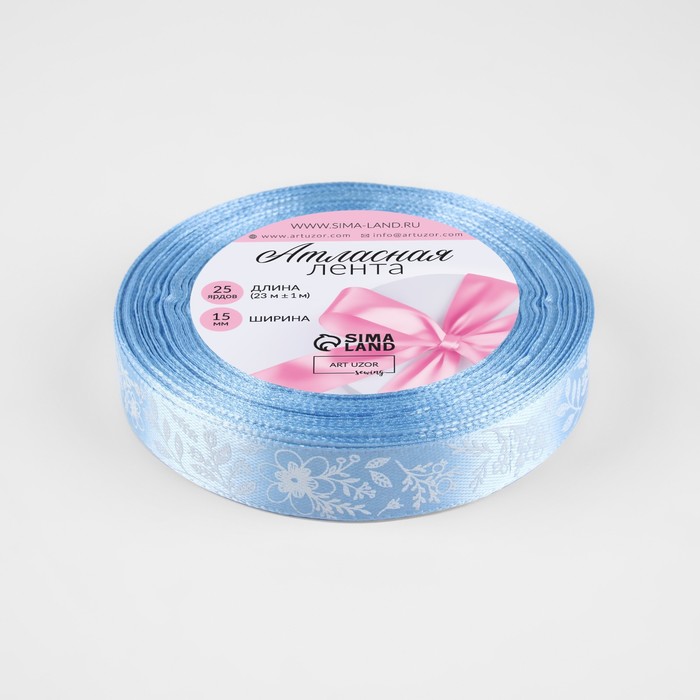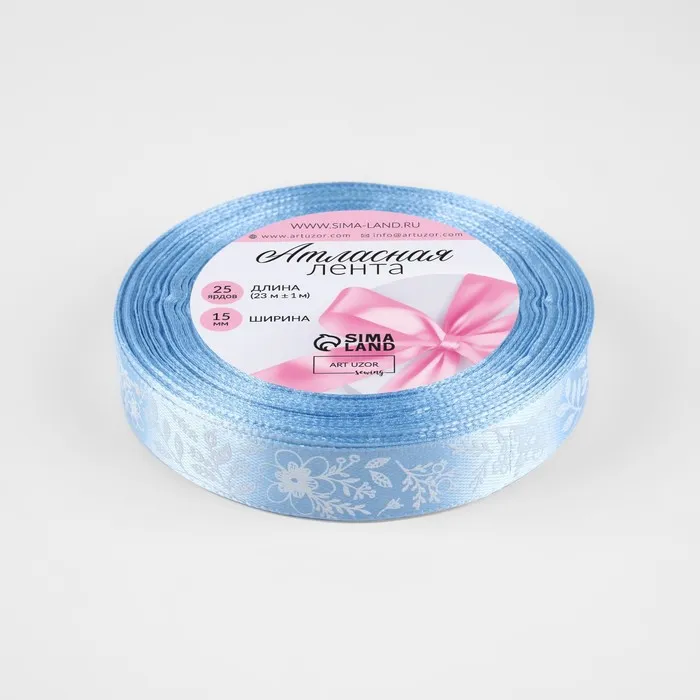 Лента атласная «Цветочки», 15 мм, 23±1 м, голубая №187 — Характеристики