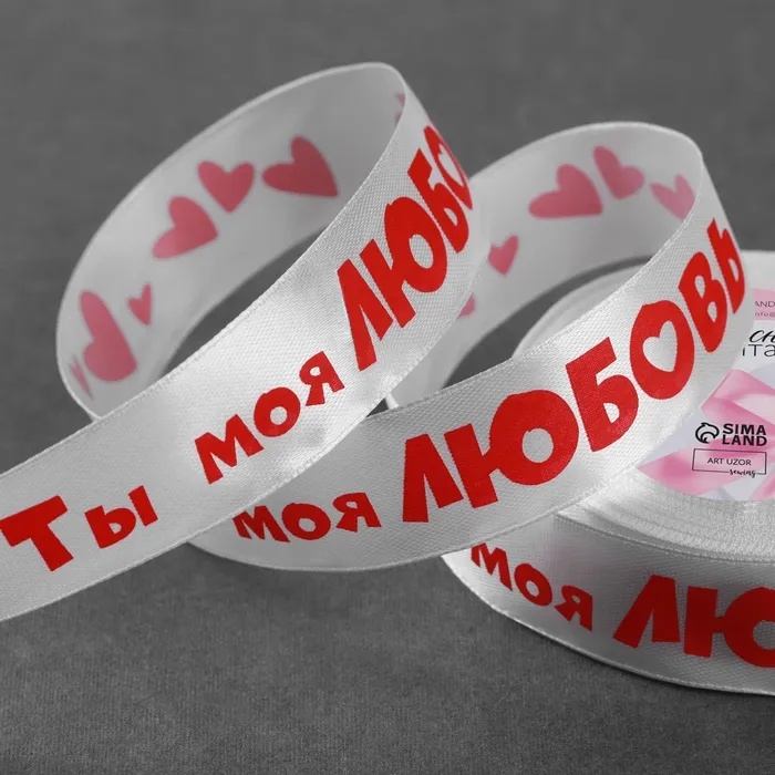 Лента атласная «Ты моя любовь», 25 мм, 18±1 м, белая — Характеристики