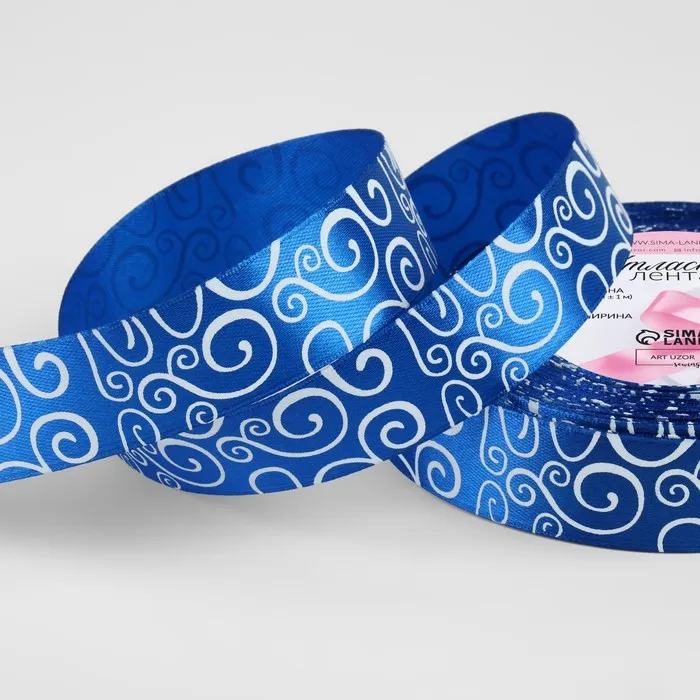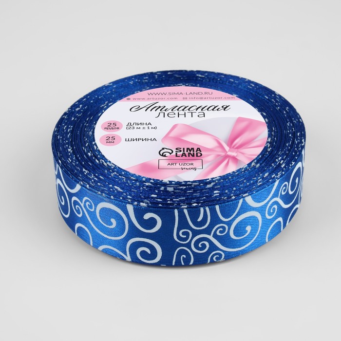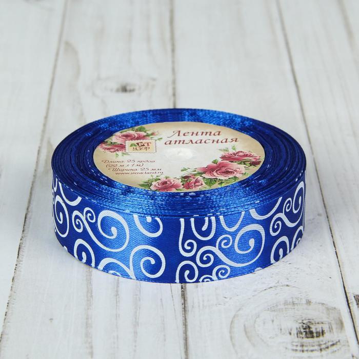 Лента атласная «Узор», 25 мм, 23±1 м, белая, синяя №040 — Характеристики