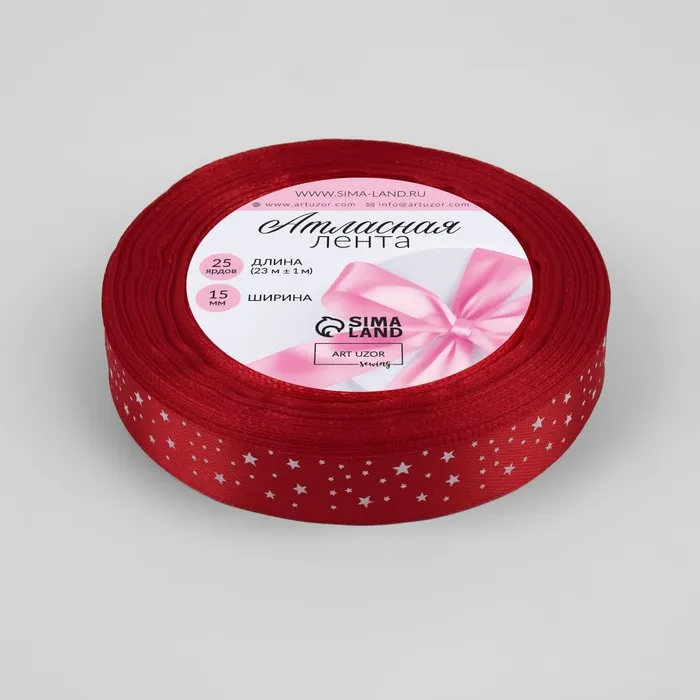 Лента атласная «Звёзды», 15 мм, 23±1 м, красная №026 — Характеристики
