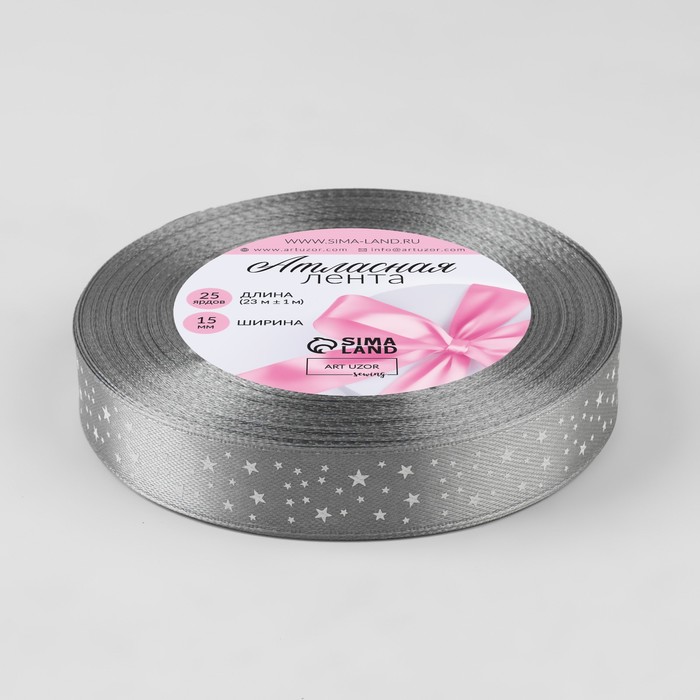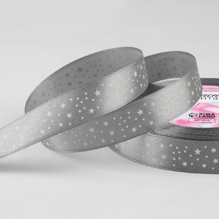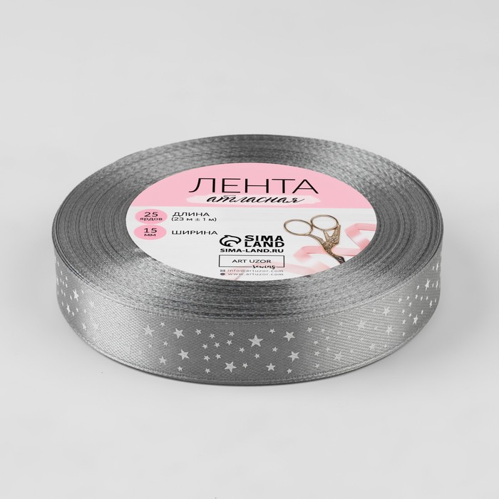 Лента атласная «Звёзды», 15 мм, 23±1 м, серая №059 — Характеристики
