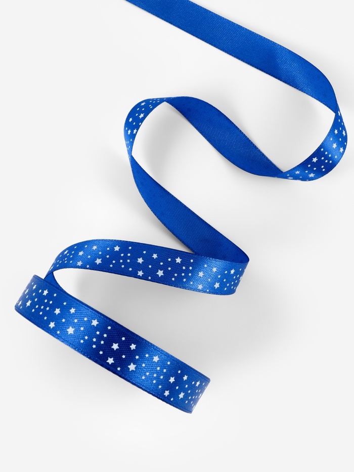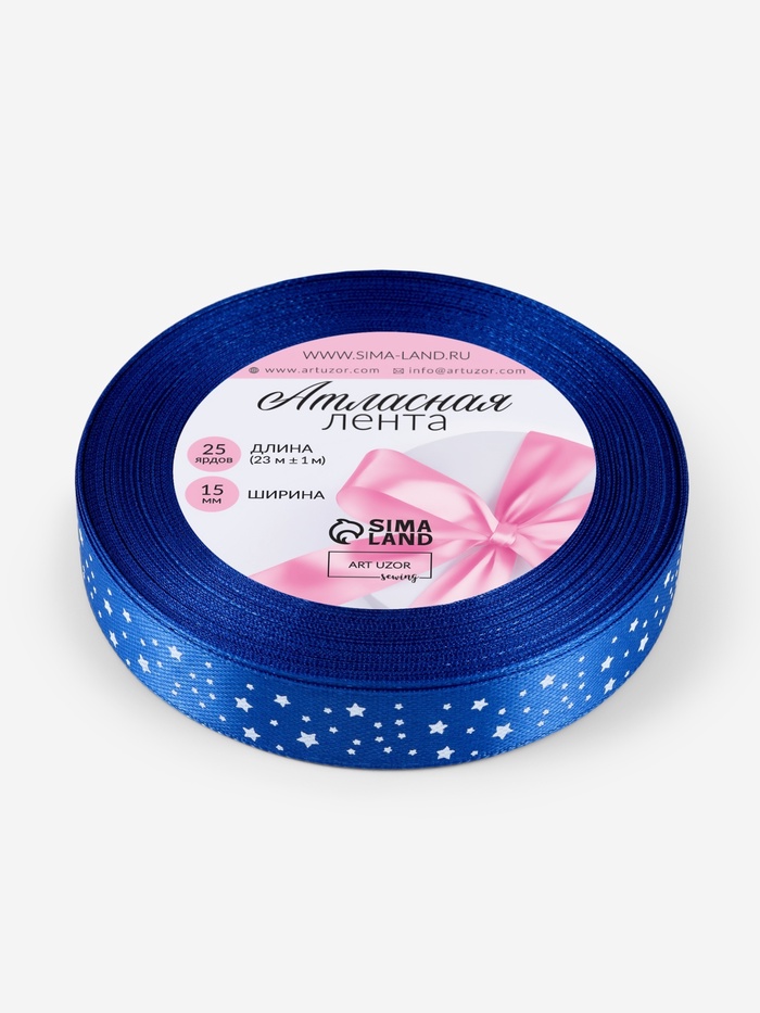 Лента атласная «Звёзды», 15 мм, 23±1 м, синяя №040 — Характеристики