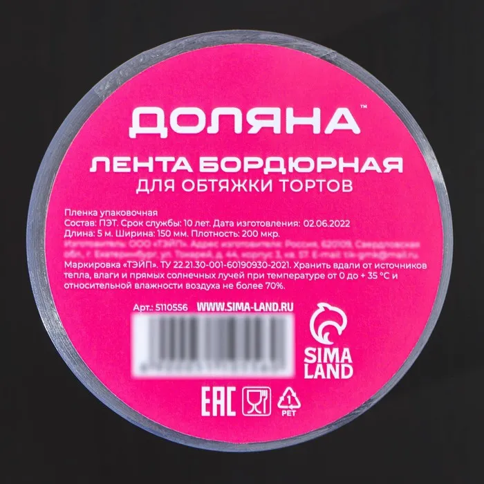 Лента ацетатная для обтяжки тортов Доляна, 200 мкр, 150 мм×5 м, прозрачная — Характеристики