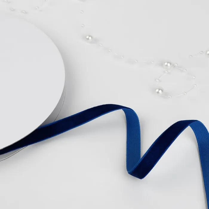 Эта узкая бархатная лента придаёт творческим проектам глубину и тактильную выразительность. Её насыщенный синий оттенок и мягкая текстура создают сдержанные цветовые акценты в декоре и handmade-поделках.