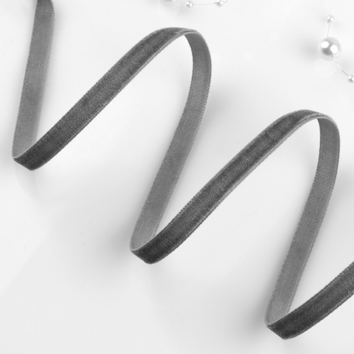 Лента бархатная, 6 мм, 18±1 м, серая №63