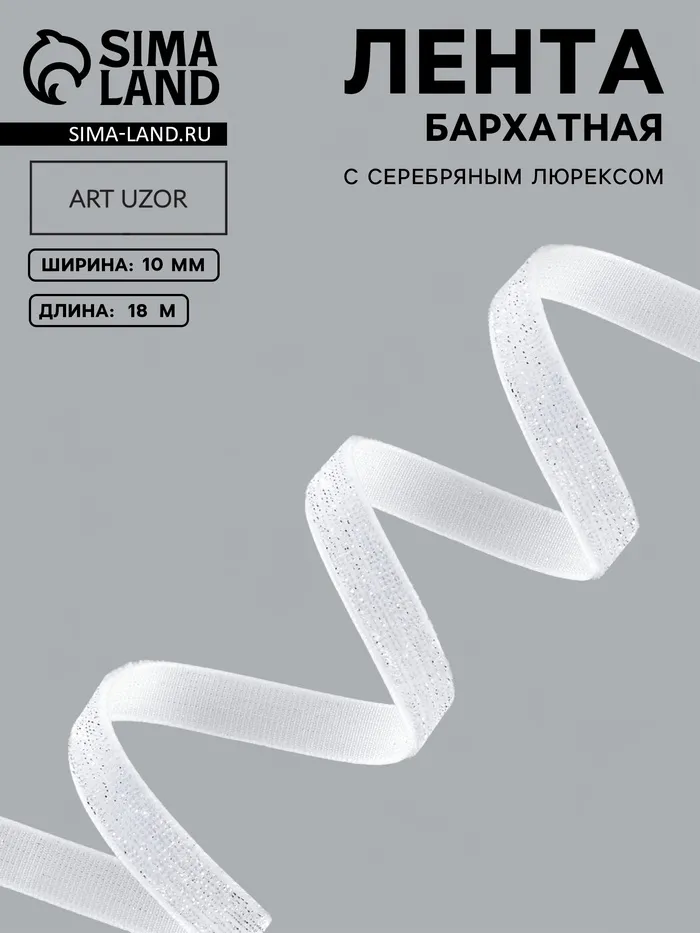 Лента бархатная, с серебряным люрексом, 10 мм, 18±1 м, белая №01 — Характеристики