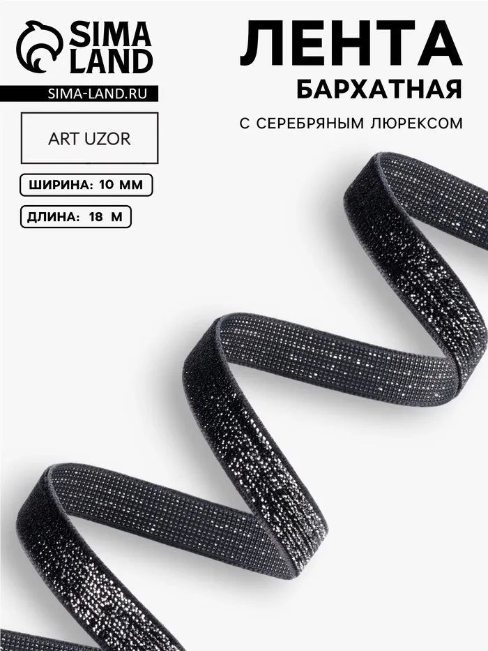 Лента бархатная, с серебряным люрексом, 10 мм, 18±1 м, чёрная №03 — Характеристики