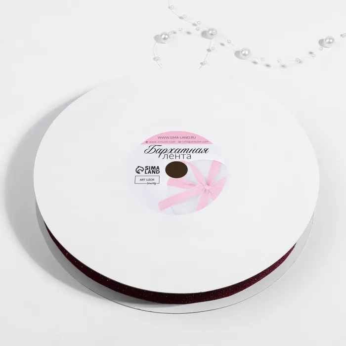 Эта бархатная лента с серебряным люрексом придаёт праздничным проектам холодное мерцание. Сочетание глубокого бордового бархата и серебристых нитей создаёт контрастную переливающуюся поверхность для выразительного декора.