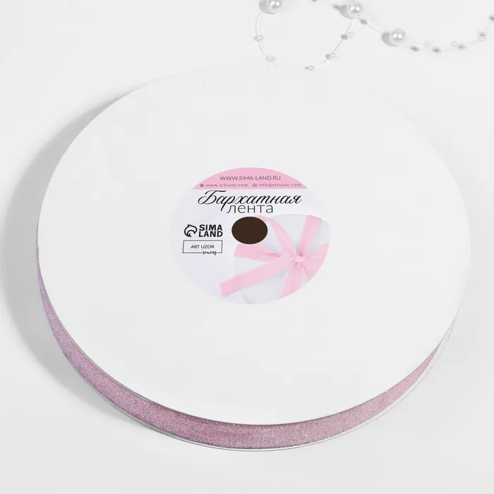 Лента бархатная, с серебряным люрексом, 20 мм, 18 ± 1 м, цвет розовый №02 — Характеристики