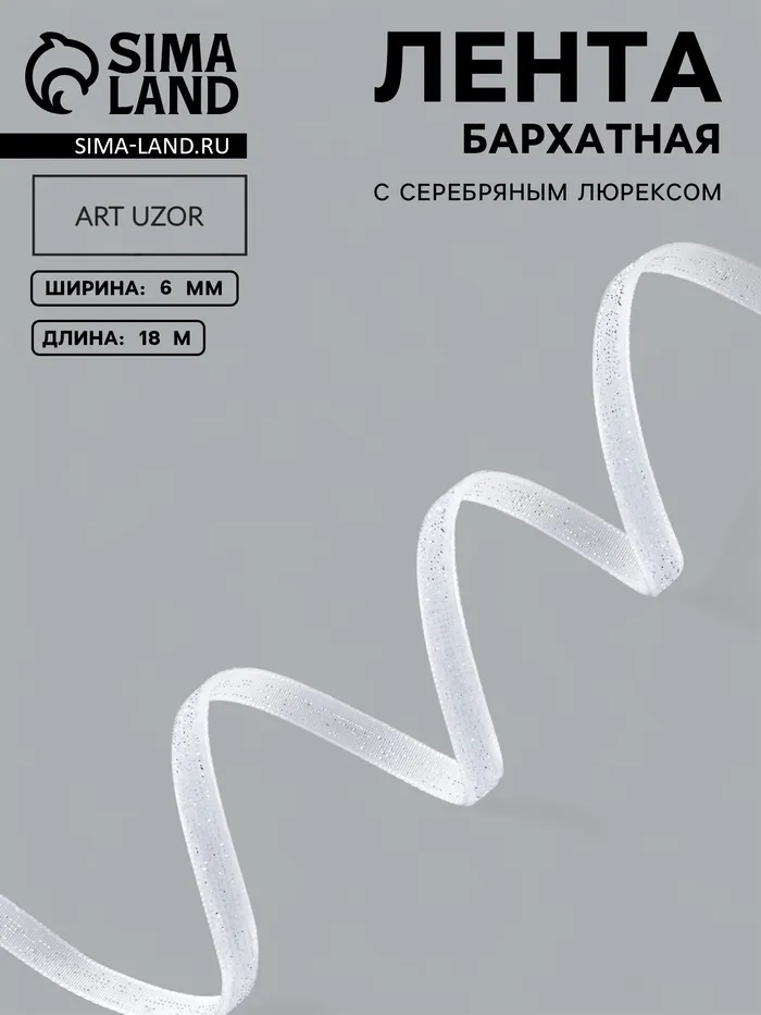 Лента бархатная, с серебряным люрексом, 6 мм, 18±1 м, белая №01 — Характеристики