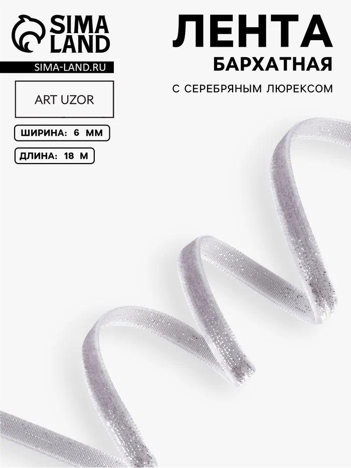 Лента бархатная, с серебряным люрексом, 6 мм, 18±1 м, серая №184 — Характеристики