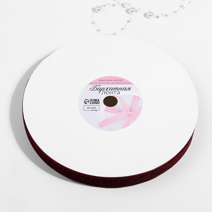 Лента бархатная, с золотым люрексом, 15 мм, 18±1 м, бордовая №46 — Характеристики