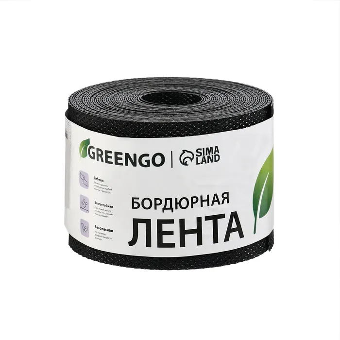 Лента бордюрная, 10 см×10 м, толщина 1.2 мм, пластиковая, чёрная, Greengo — Характеристики