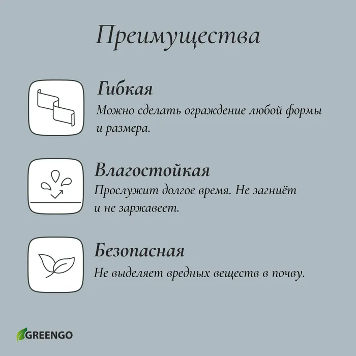 Лента бордюрная, 10 см×9 м, толщина 0.6 мм, пластиковая, гофра, чёрная, Greengo — Характеристики
