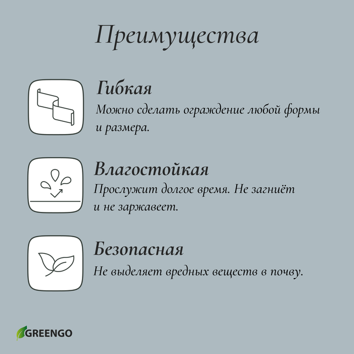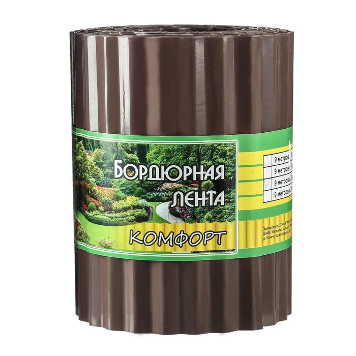 Лента бордюрная, 20 см×9 м, толщина 0.6 мм, пластиковая, гофра, тёмно-коричневая, Greengo — Характеристики