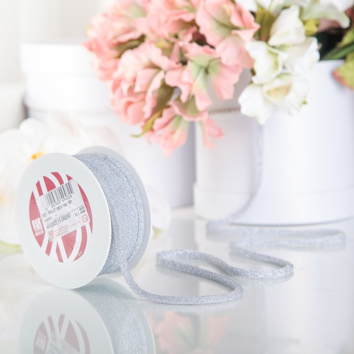 - Идеальный выбор для Нового года: Серебристый оттенок и блёстки ассоциируются с зимними праздниками, инеем и снежным сиянием. Лента добавляет композиции волшебства и торжественности.