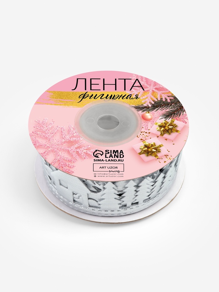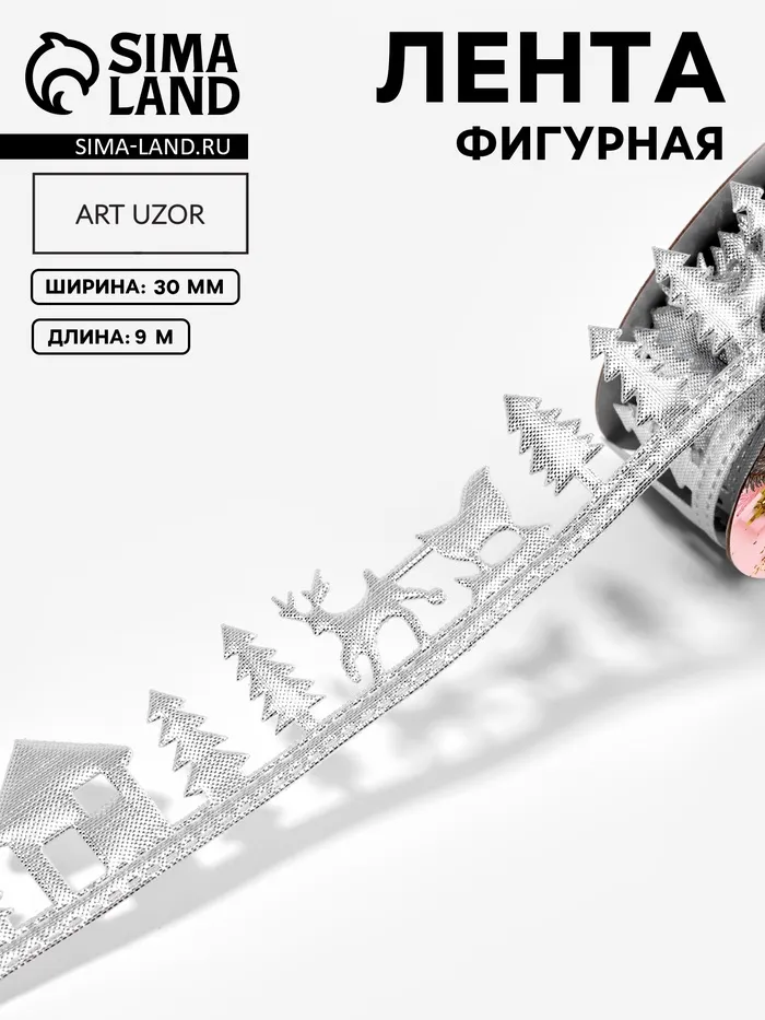 Лента декоративная фигурная «Новогодний лес», 30 мм, 9 ± 0,5 м, цвет серебряный — Характеристики