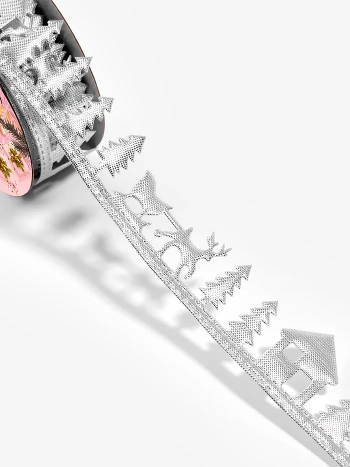 Создайте волшебную атмосферу праздника с этой серебряной фигурной лентой. Её изящный контур напоминает заснеженные ели и животных, добавляя декору мерцающий объем и динамику. Девяти метров хватит, чтобы оформить рождественский венок, гирлянду, подарочную упаковку или создать на стене изящную инсталляцию.