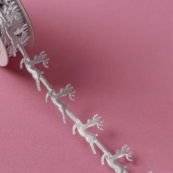 Лента декоративная фигурная «Олени», 20 мм, 9±0.5 м, цвет серебряный — Характеристики