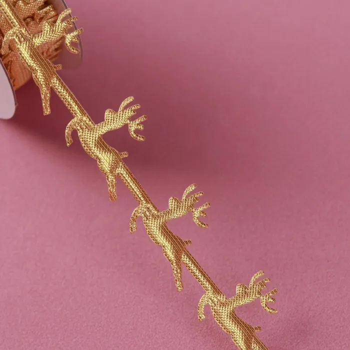 Лента декоративная фигурная «Олени», 20 мм, 9±0.5 м, цвет золотой — Характеристики