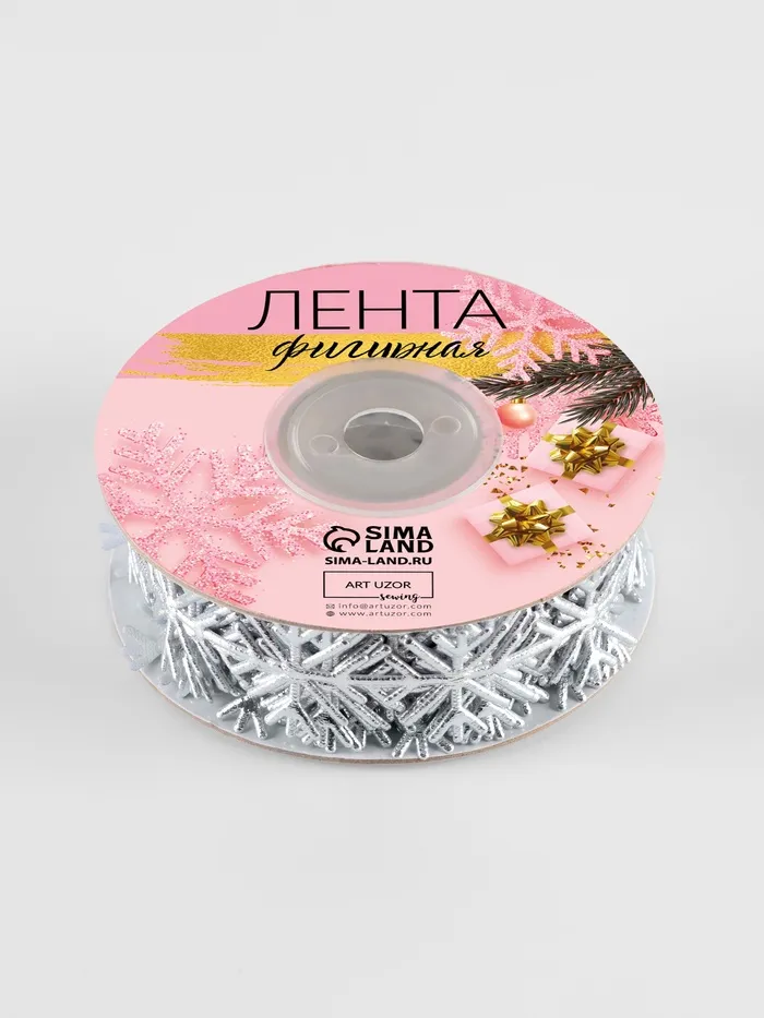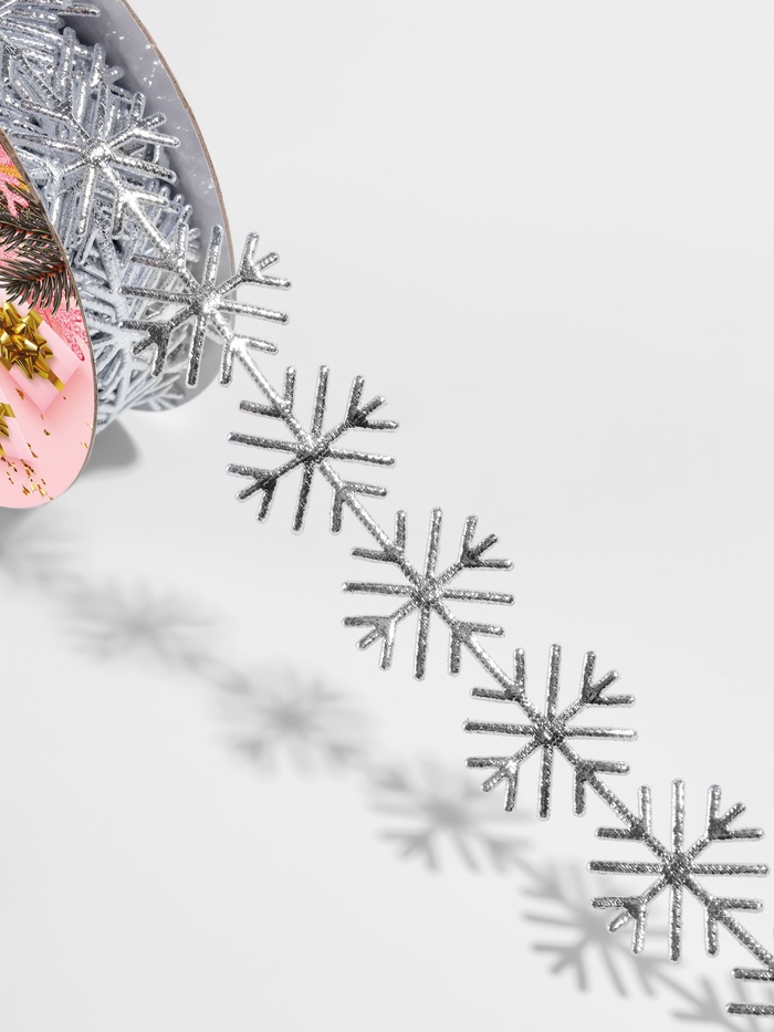 Эту декоративную ленту используют для украшения подарков, оформления новогодних интерьеров, создания праздничных открыток или скрапбукинга. Ее можно применять в технике оригами или комбинировать с другими материалами для достижения желаемого эффекта. Фигурный дизайн со снежинками придает композициям особую изысканность и зимнюю атмосферу. Лента легко режется и фиксируется на поверхности, что делает ее удобной в использовании при создании объемных украшений или рамок.