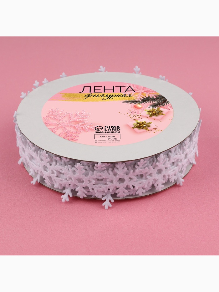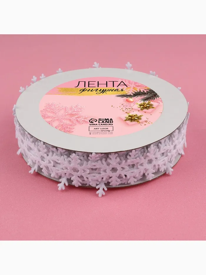 Лента сохраняет четкость рисунка при изгибах, создавая выразительную кромку на подарочной упаковке. Ажурный узор снежинок подходит для оформления новогодних открыток, декора окон и создания рождественских венков. Материал не осыпается при нарезке, сохраняя аккуратный край. Лента легко приклеивается к бумаге, картону и текстилю.