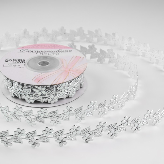 Лента декоративная фигурная «Снежинки», 25 мм, 9 ± 0,5 м, цвет серебряный — Характеристики