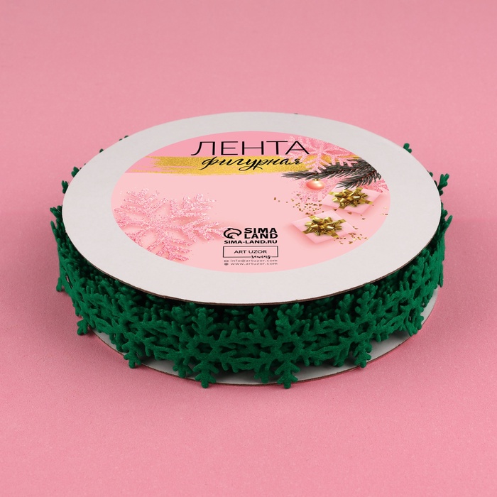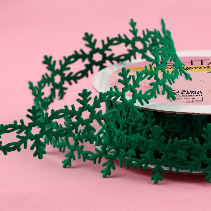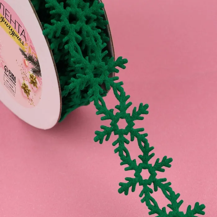 Лента декоративная фигурная «Снежинки», 25 мм, 9±0.5 м, зелёная — Характеристики