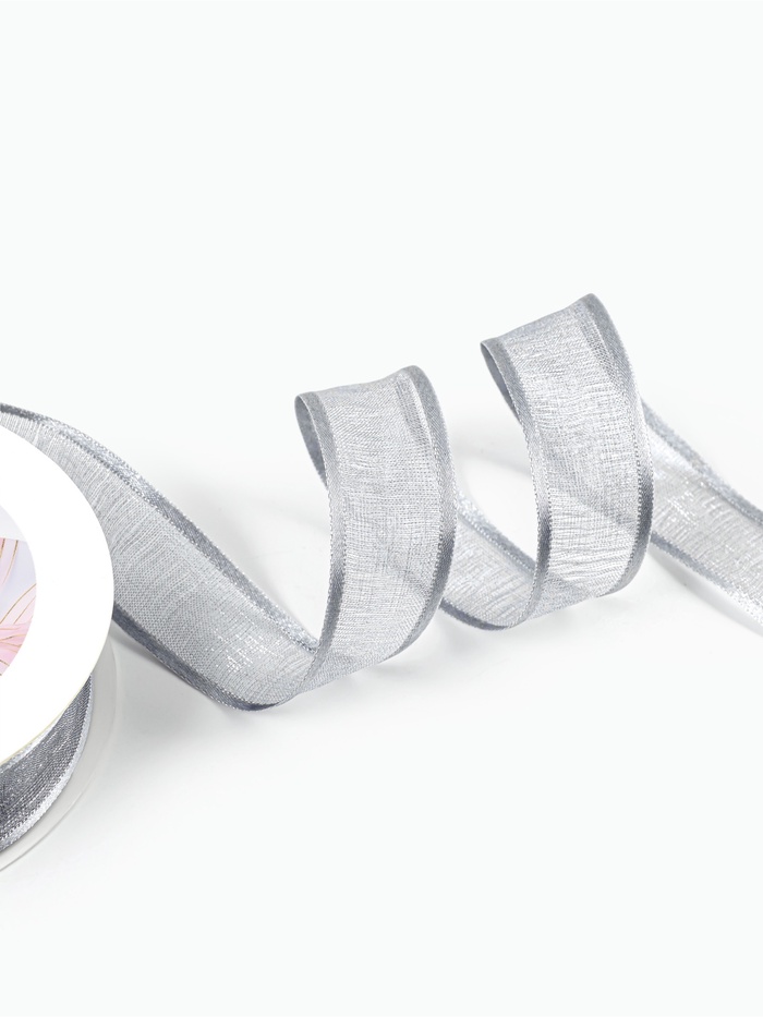Серебряная декоративная лента сочетает прочность капрона и блеск атласа. Металлический отлив создаёт эффект новогоднего инея, подходя для праздничного декора и упаковки. Лента хорошо держит узел, не теряя форму.