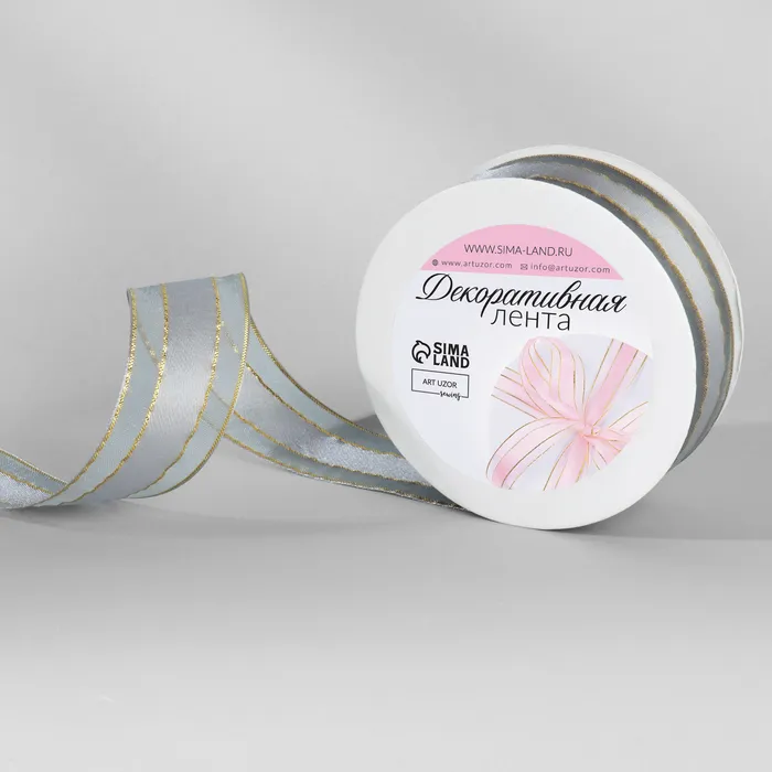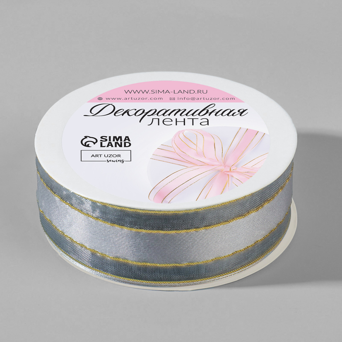 Лента декоративная, капроновая,атласная, с люрексом, 25 мм, 18±1 м, серый — Характеристики