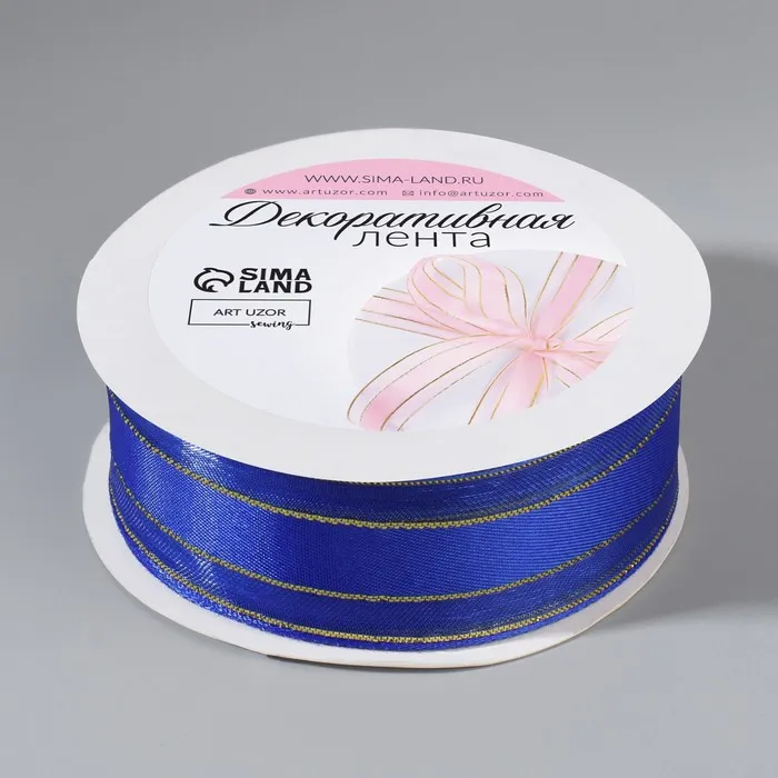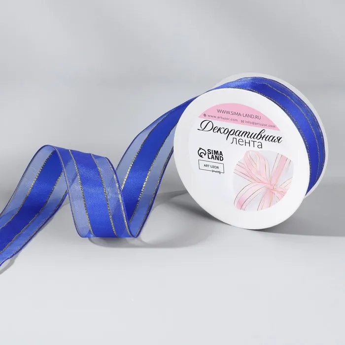 Лента декоративная, капроновая,атласная, с люрексом, 25 мм, 18±1 м, синяя — Характеристики