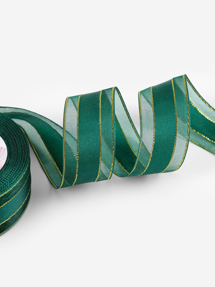 Лента декоративная, капроновая/атласная, с люрексом, 25 мм, 18±1 м, цвет изумрудный — Характеристики