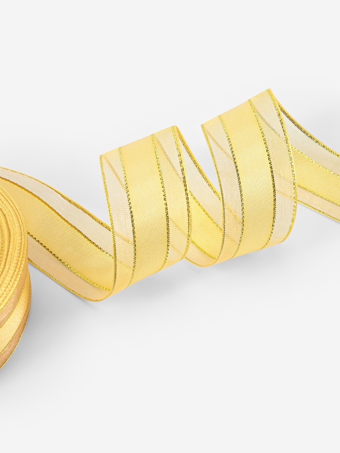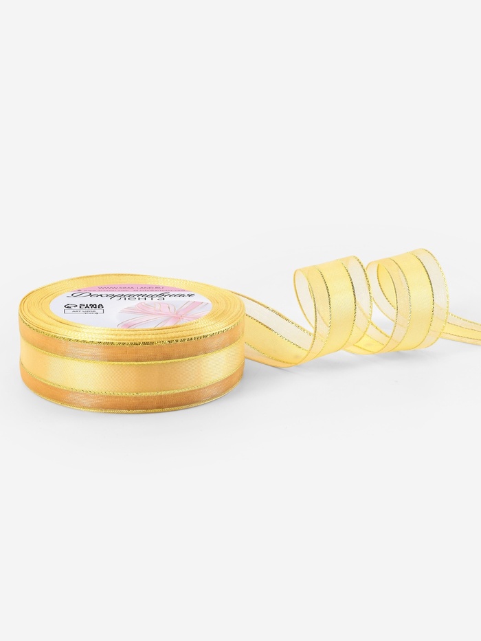 Лента декоративная, капроновая/атласная, с люрексом, 25 мм, 18±1 м, цвет золотой — Характеристики