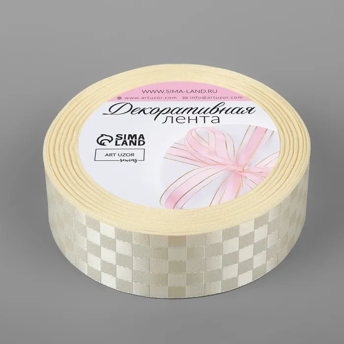 Лента декоративная «Квадраты», 25 мм, 9.1±0.5 м, молочная — Характеристики