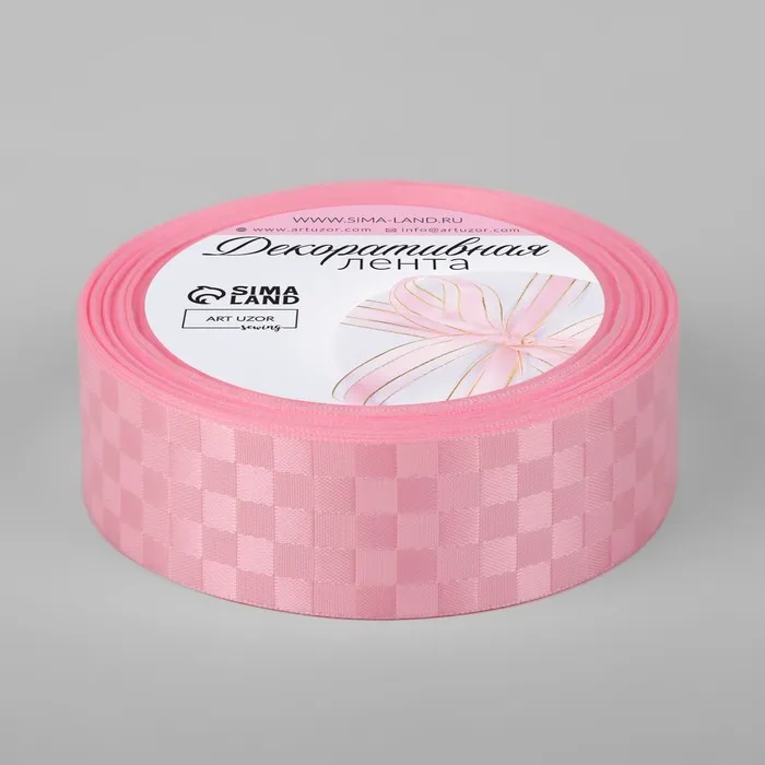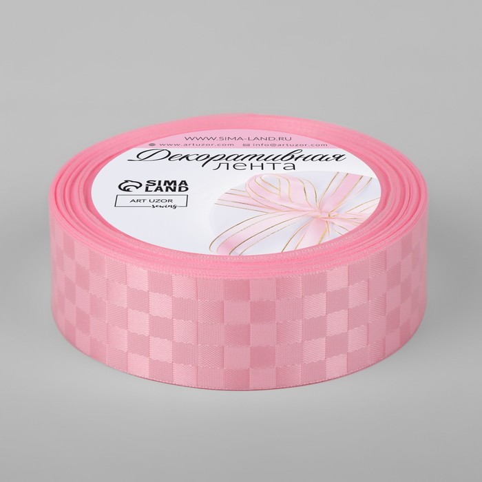 Лента декоративная «Квадраты», 25 мм, 9.1±0.5 м, розовая — Характеристики