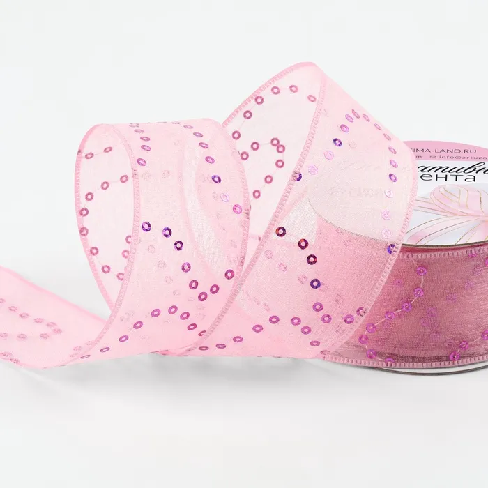 Лента декоративная «Пайетки», 40 мм, 9±0.5 м, розовая — Характеристики