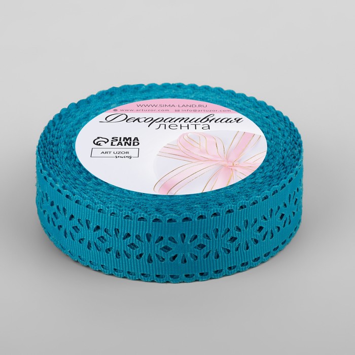 Лента декоративная, репсовая «Ажурные ы», 25 мм, 9.1±0.5 м, ярко-голубая — Характеристики