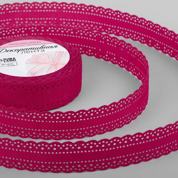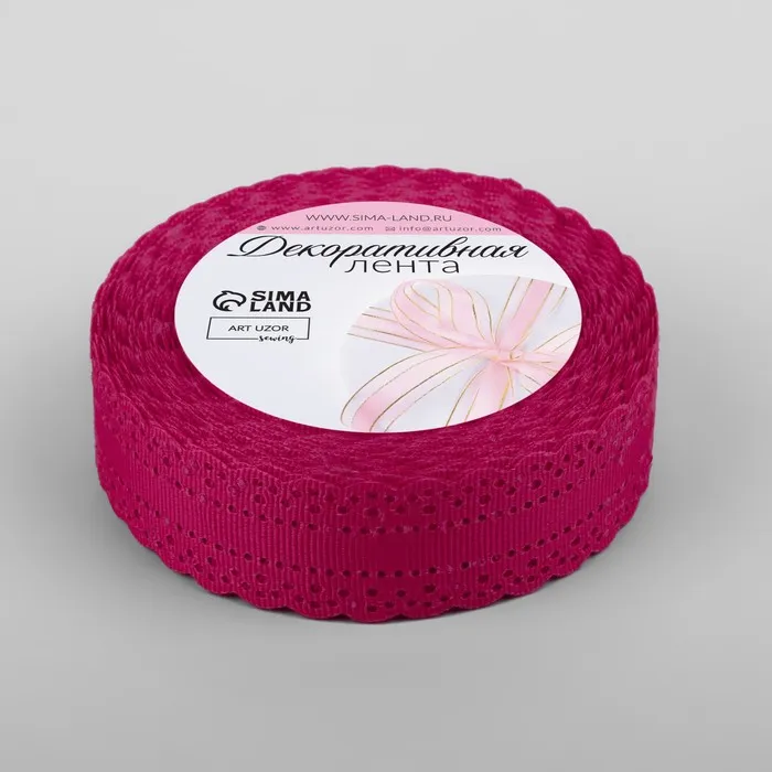 Лента декоративная, репсовая, с ажурным краем, 25 мм, 9.1±0.5 м, малиновая — Характеристики