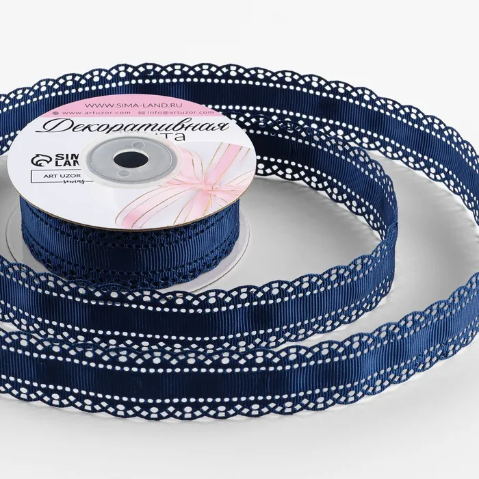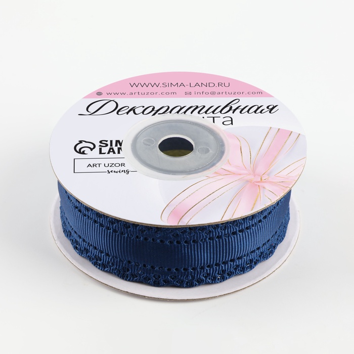 Лента декоративная, репсовая, с ажурным краем, 25 мм, 9.1±0.5 м, тёмно-синяя — Характеристики