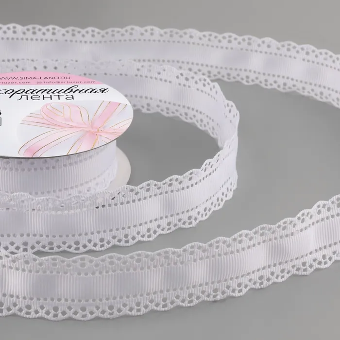 Лента декоративная, репсовая, с ажурным краем, 27±3 мм×9.1±0.5 м, белая — Характеристики