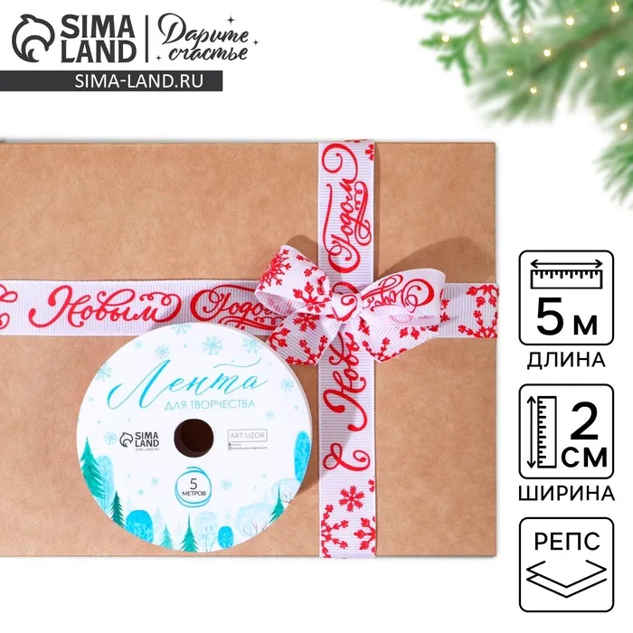 Лента декоративная репсовая «С Новым годом!», 2 см × 5 м — Характеристики
