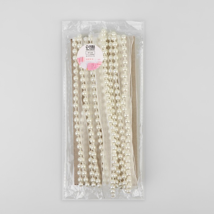 Лента декоративная с бусинами, 13 мм, 4,5 ± 0,5 м, цвет белый — Характеристики