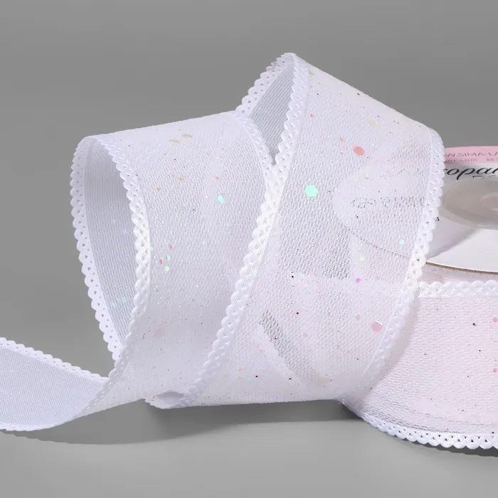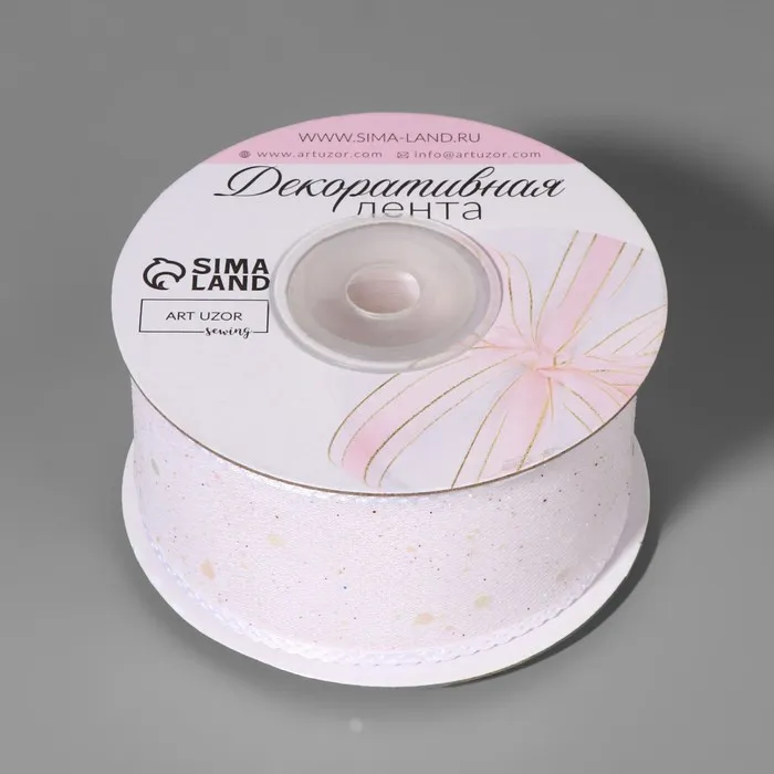 Лента декоративная, с глиттером, 38 мм, 9±0.5 м, белая, радужная — Характеристики