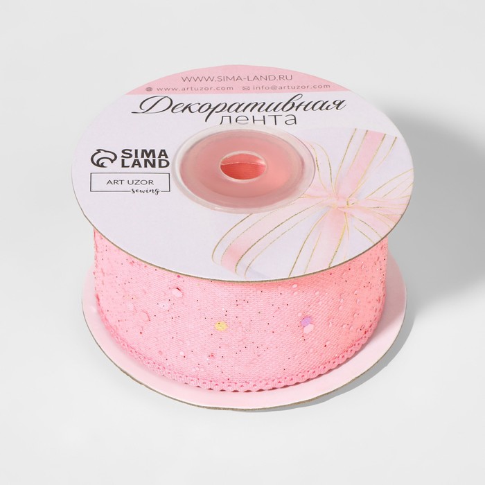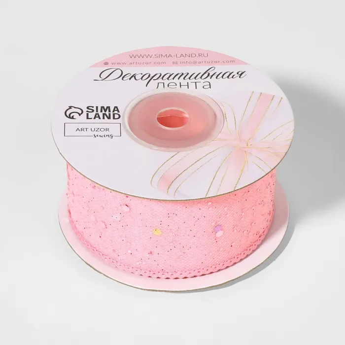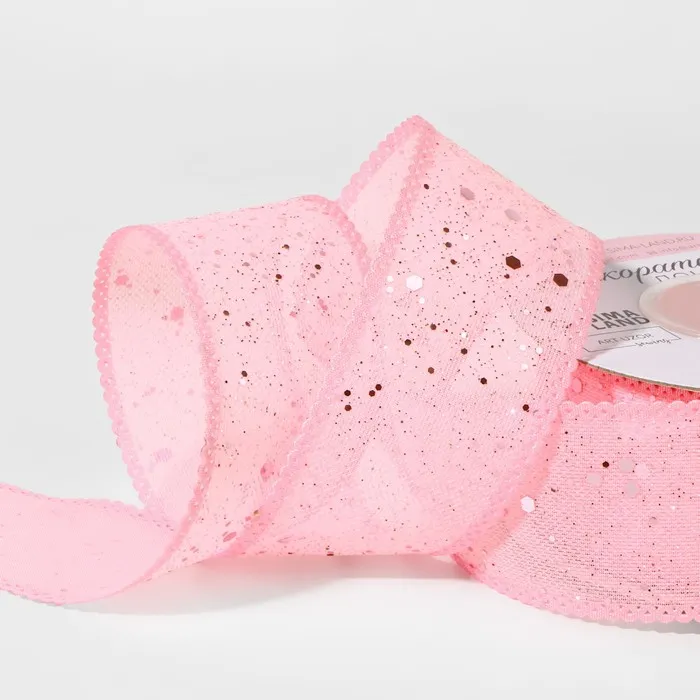 Лента декоративная, с глиттером, 38 мм, 9±0.5 м, розовая — Характеристики